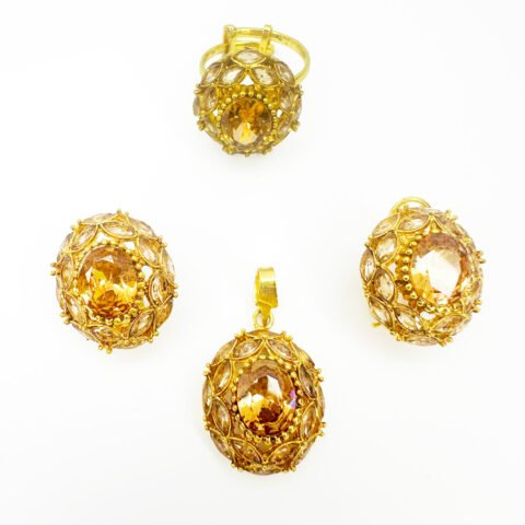 Elegant Gold-Plated Champagne Pendant Set for Sale at Rang e Zevar Islamabad