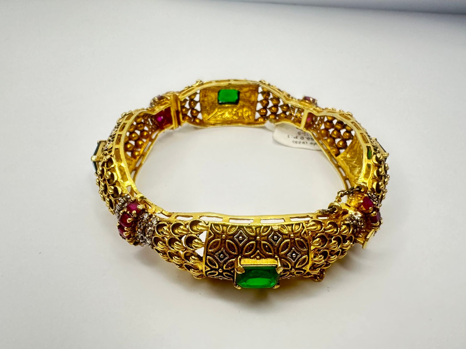 Gold Plated Heavy Kara Bangle, a symbol of tradition, luxury, and fine craftsmanship. Made from premium materials with a rich gold finish, this stunning kara bangle is perfect for bridal wear, festive occasions, and formal events. Its intricate detailing and solid design reflect timeless beauty and sophistication. Explore more gold-plated and silver jewelry — bangles, bracelets, rings, and necklaces — exclusively at Rang e Zevar Islamabad, where elegance meets excellence.
